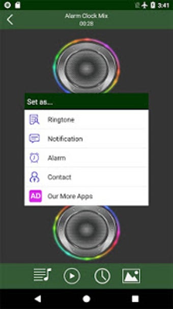 يتيح لك التطبيق تعيين نغمات المنبه كنغمة الافتراضية للهاتف أو نغمة الاتصال أو نغمة الإشعار. تحتوي ملفات MP3 ذات الحجم الصغير على تأثيرات صوتية عالية الجودة ، مما يجعلها خيارًا مثاليًا لأولئك الذين يبحثون عن تطبيق ساعة منبه ممتع وعالي الجودة. يمكنك أيضًا تعيين خلفية النغمة كخلفية متحركة مجانًا.